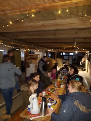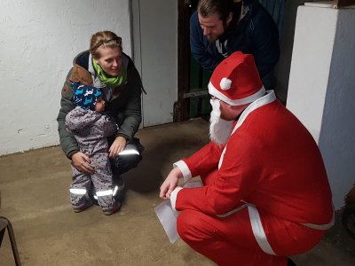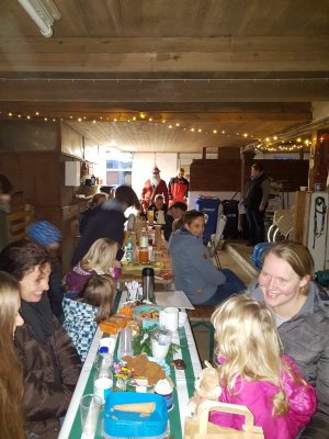 Wir haben fleißig Leckerlies gebacken und in kleine Tüten verpackt. Nachdem wir uns bei Kaffee, Tee, Saft und Kuchen gestärkt haben, kam der Weihnachtsmann. In seinem Sack hatte er kleine Stoffbeutel mit Süssigkeiten gefüllt dabei.